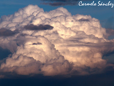 Un frente frío con nubosidad muy potente se sitúa al oeste de las islas pero se ve bloqueada la llegada del mismo por las altas presiones. Al atardecer, desde el Teide, el sol deja ver que los desarrollos en el horizonte son espectaculares